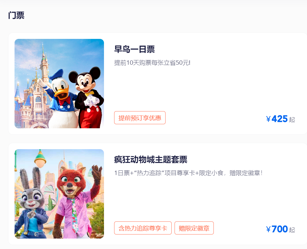 迪士尼官网显示,主题园区还不是提供给游客的免费增值项目,正常早鸟一日票价格425元起(会动态调价),但疯狂动物城主题套票价格700元起,比常规门票贵了275元。参考日均五万人次,哪怕只有百分之二,也就是1000人购买套票,就会增加275万的票房收入,用不了多久,找明星配音的成本就收回来了。
