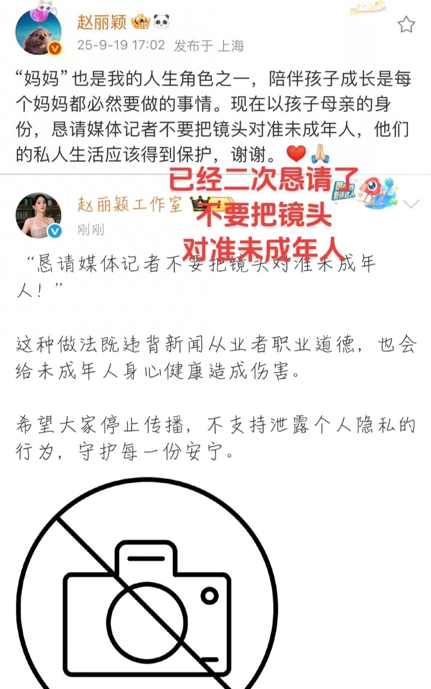 近期赵丽颖和孩子的生活照片频频被无良偷拍者发布到网上,给未成年人的生活带来了极大的安全隐患,正是在这样的情况下,赵丽颖无奈第二次发文。